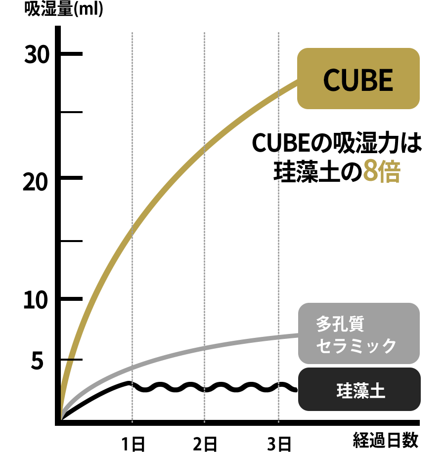 5Lまでの空間を珪藻土の8倍もの吸湿力で徹底除湿。軍事用に使われるほどの確かな除湿力!