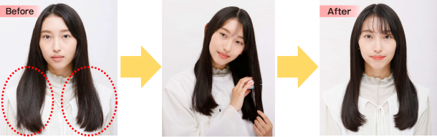 「クシでとかす」・「毛束を挟む」・「カットする」の3 ステップで、簡単且つ安全にカットし、自然な仕上がりを実現します。お子様の前髪カットにもお使いいただけます。