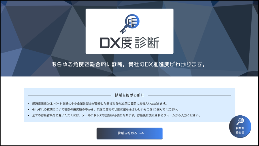 そこで、株式会社MU(以下、MU)では、企業様が自社のDXの成熟度を簡単に測定し、改善の方向性を見つけるための優れたツール「DX度診断」を開発しました。この「DX度診断」は、業界のベストプラクティスやデジタルテクノロジーの専門知識に基づいて開発され、豊富な経験を持つ中小企業診断士を含むMUの開発チームによって構築されました。