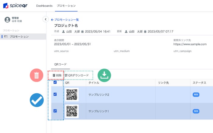 特徴6:発行したQRコードはプロモーション(プロジェクト)ごとに管理可能
