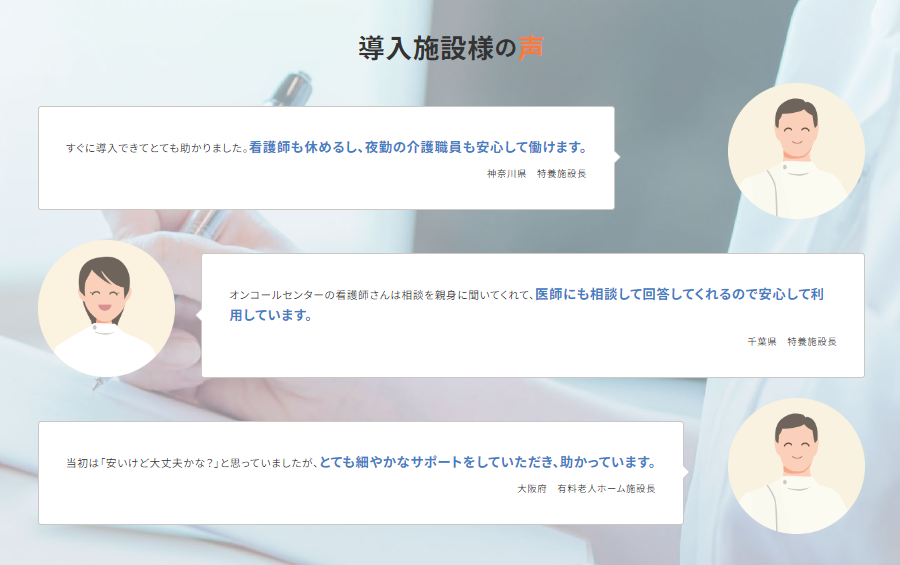 実際に「フレックスオンコール」をご利⽤いただいた介護施設様からは、以下のようなお声をいただきました。