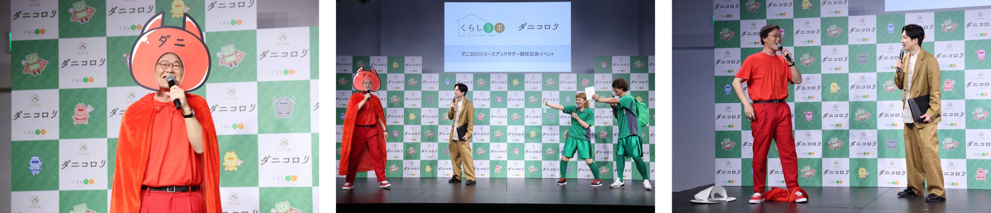 全身真っ赤な姿で“ダニ”に変身したアインシュタイン稲田さん登場!「ダニコロリシリーズアンバサダー就任記念イベント」開催