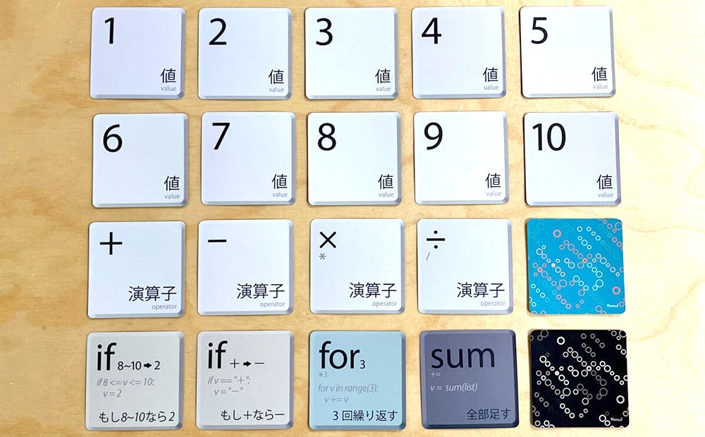 ◉ifカードを使って数字を変えたり、forカードを使って繰り返し処理を行ったり、プログラミングの要素も加えた仕様になっています。