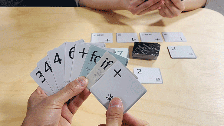 交互にカードを出していき、早くお題の計算式にたどりついたプレイヤーの勝利!