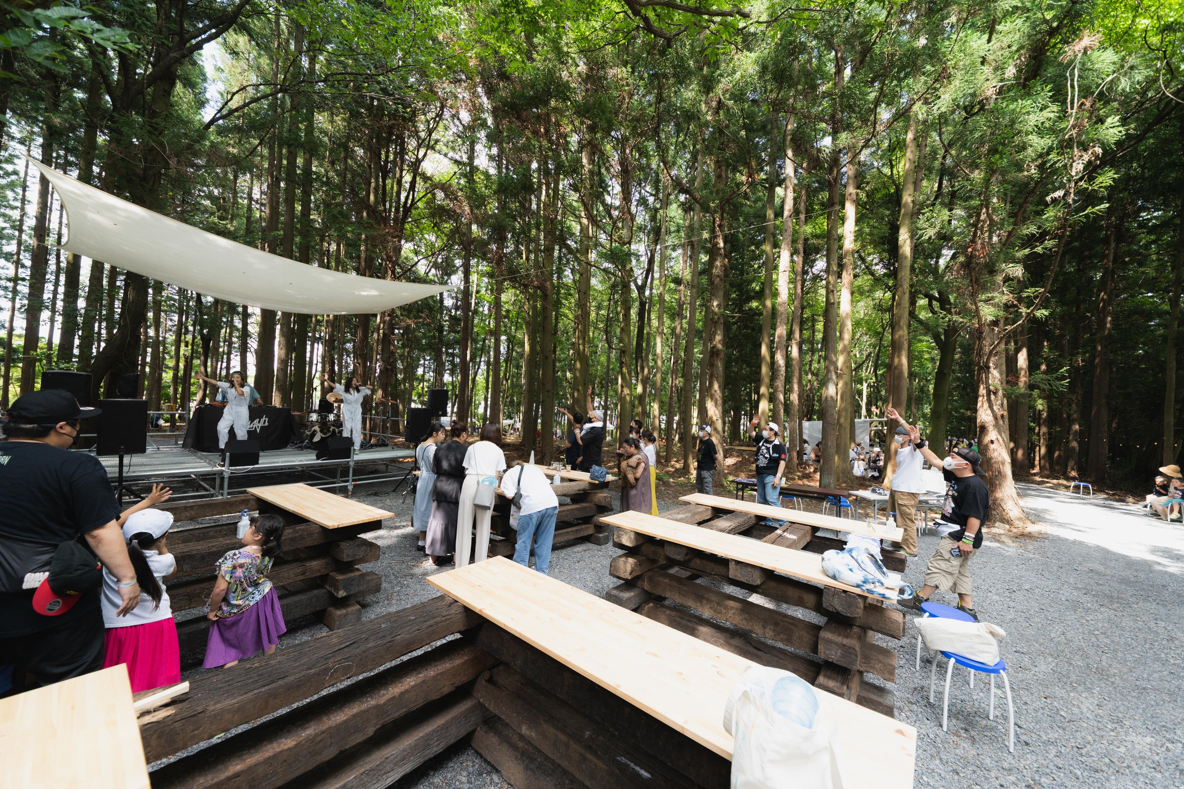 「RAKUEN de Marche in Nakajima」では、アーティストの DEFROCK さん、toitoitoi さん、DJ DONGURI さん、DJ MUSHO さんをお招きし、イベント会場内特設ステージにおいてスペシャルライブを行います。たくさんの樹木に囲まれた中で響き渡 るアーティストの方々の歌声をお楽しみください。