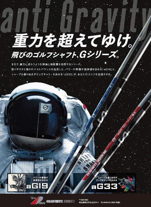 aG19/aG33からなるシリーズブランド。振りやすさ・飛距離を追求して開発されたドライバーシャフト。「アンチ グラビティ」(宇宙空間にいるような無重力の飛び)がコンセプト。