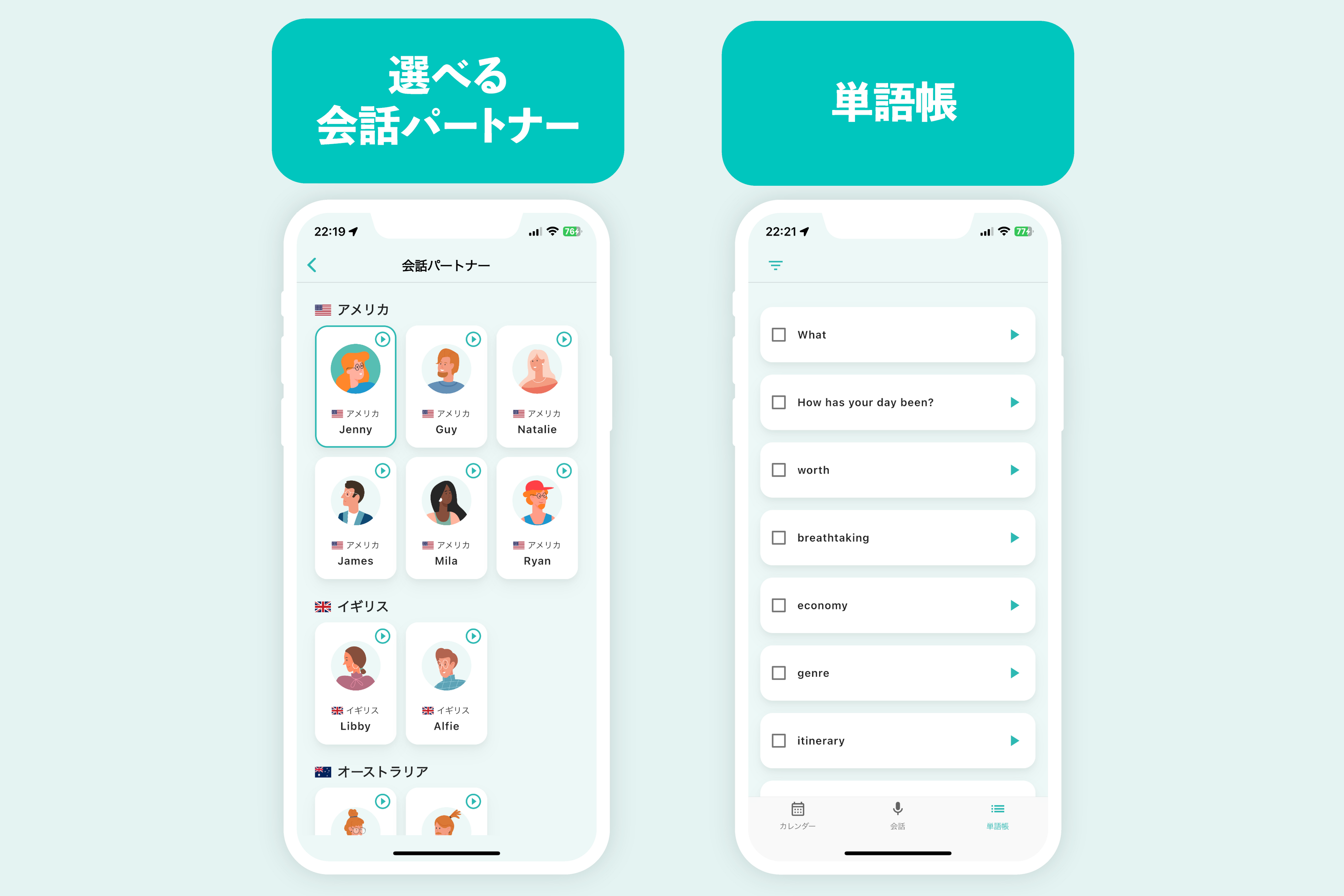 ・相手がAIのため初心者でも気軽に英会話を試せる