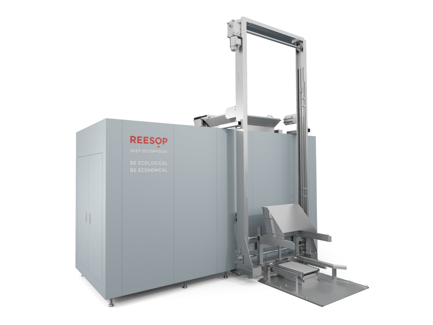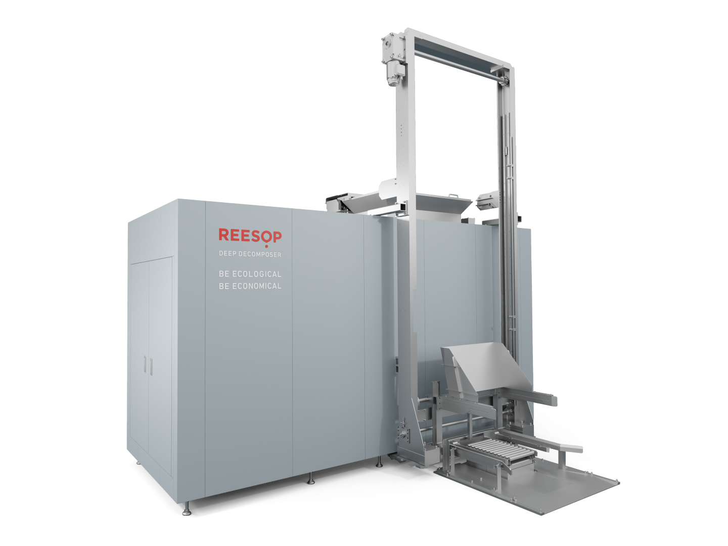 DEEP DECOMPOSERは、工場から排出されるような大量の廃棄物に特化しており1台で最大1日1トンの処理が可能です。廃棄物の入ったコンテナをリフトにはめてボタンを押すだけで誰でもかんたんに使用が可能で、使用電力量は1日あたり20~25kWhと省電力設計。そのため運用コストも安価で、環境配慮の取り組みやSDGsにも貢献することにつながります。