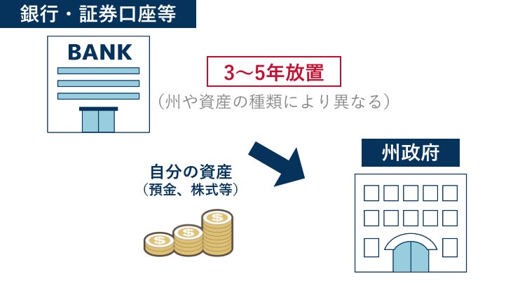 海外赴任や留学などで外国に長期在住する在留邦人は、現地の銀行などの金融機関に口座を作りますが、日本への帰国後も口座やその中の金融資産をそのままにしておく場合も多くあります。しかし、アメリカでは、日本と異なり、銀行や証券口座を平均的に3〜5年程度使用せずに放置をすると、その金融口座は廃止され、中にある現預金などは各州政府に移管されてしまいます。 これを、米国未請求資産 (unclaimed property) といいます。