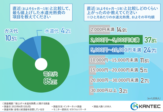 株式会社KANTEC(本社:大阪府大阪市、代表取締役:山本 静佳)は、自宅に給湯器を設置している方を対象に、「値上げ×水道光熱費」に関する調査を実施しました。
