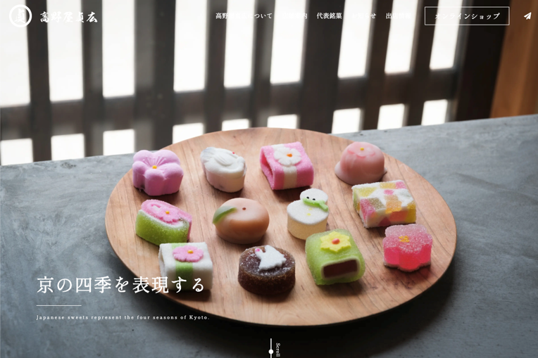 2020年の世界的なパンデミックは、生活様式の変化や、家族や友人とのや時間の過ごし方への価値観の変化をもたらしました。外食が外出が制限されるなかで、全国から美味しいものをお取り寄せして楽しむスタイルが進行し、現在もその楽しみ方は定着しています。以前の生活様式に戻るものがある一方で、在宅ワークの浸透など、自宅で過ごす時間が増え、家族や友人と過ごす時間への豊かさが注目されています。そのような中で、京菓匠髙野屋貞広を全国の様々な年齢層の方々にお楽しみいただけるよう、公式ホームページをリニューアルし、ECサイトを新設しました。ユーザー目線で見やすく使いやすいデザインとなることを大切に、情報の整理を進め、スマートフォン対応も考慮しました。また、検索エンジン最適化(SEO)によってサイトの可視化を図り、コンテンツの更新や速度の改善でユーザーの利便性の向上を意識しました。