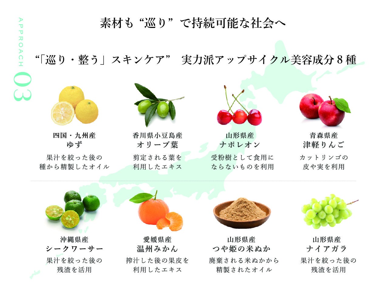 アプローチ③:素材も巡りで持続可能な社会へ「国産アップサイクル保湿美容成分」で巡り・整う