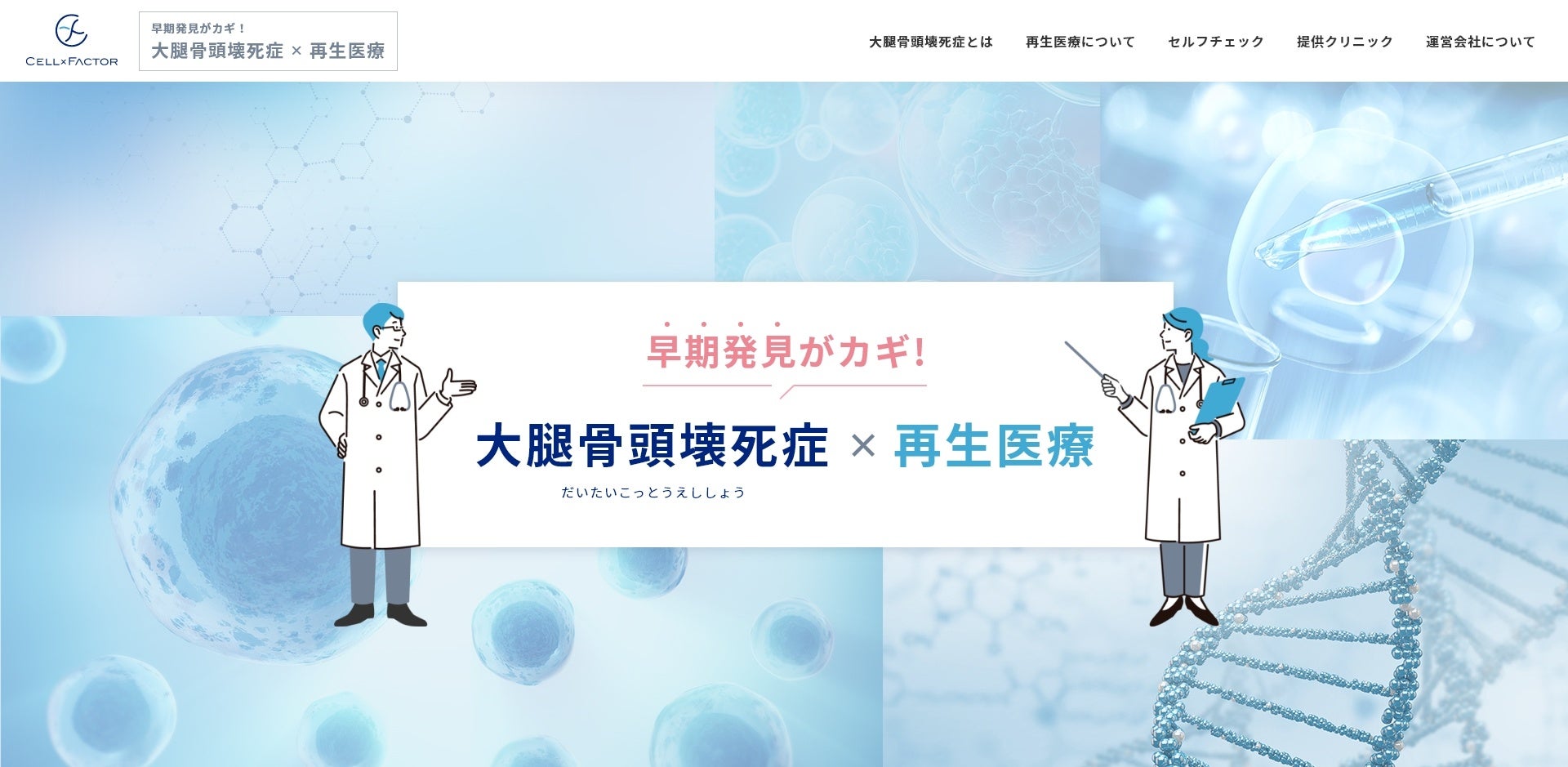再⽣医療スタートアップのセルファクター、コロナ後の増加が予測される難病「⼤腿⾻頭壊死症」の疾患啓発サイトを開設
