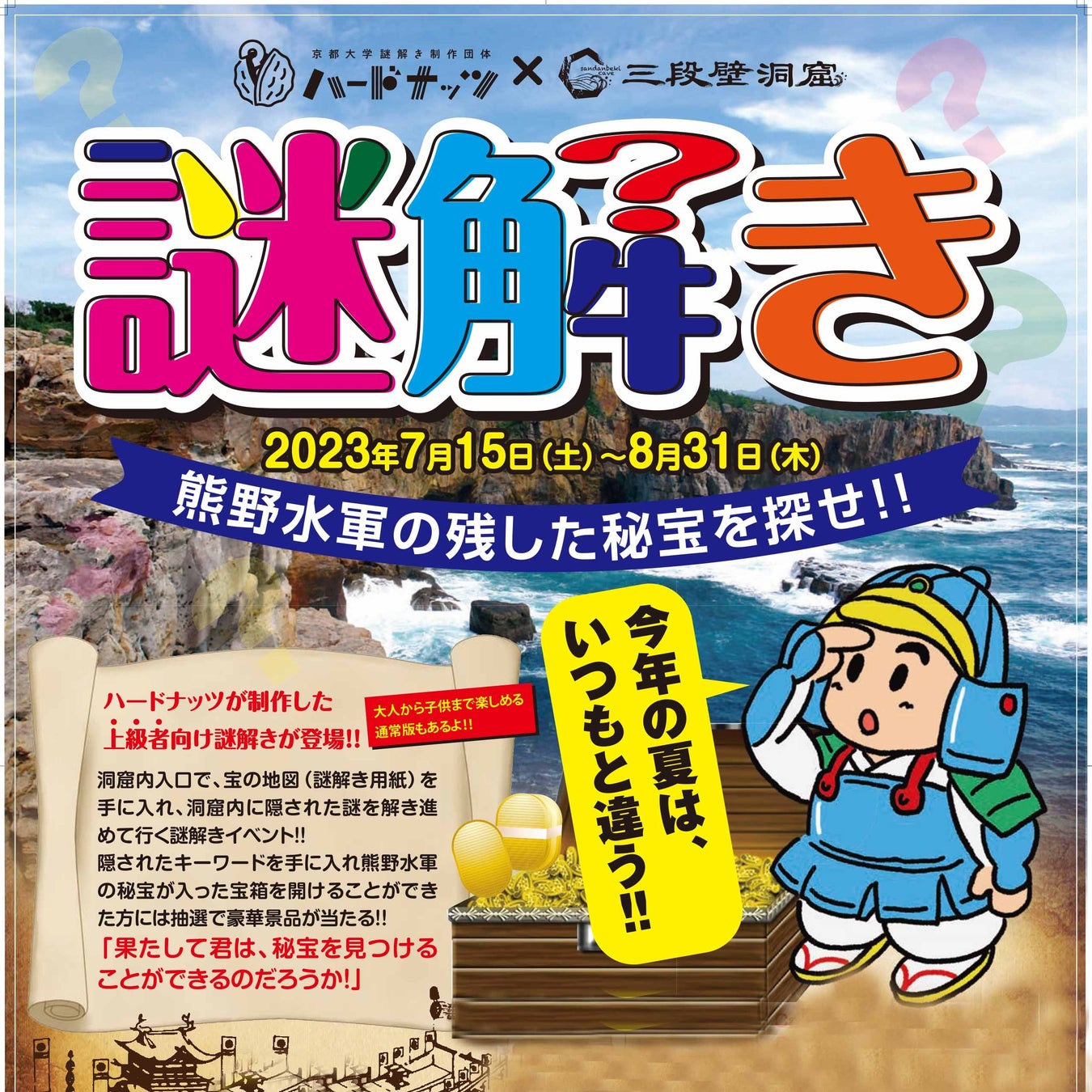 「三段壁洞窟で謎解き!!熊野水軍の残した秘宝を探せ」を7月15日より開催