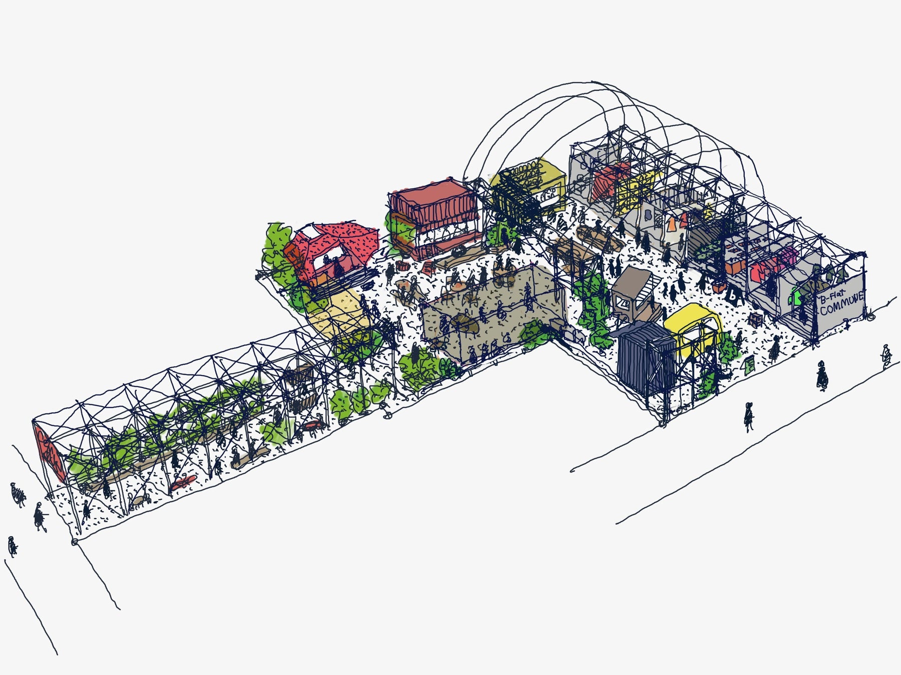 「B-Flat COMMUNE」は、商業施設としての枠を超え、キッチンカーで料理教室を開いたり、ラジオスタジオで情報発信を行ったり、相互コミュニケーションが生まれる場所として展開していく予定です。こちらは、2026年までの3年間の期間限定での運営であり、限られた時間だからこそできる活動を行ってまいります。近隣地域にお住まいの方々から海外からのお客様まで、誰もが交流を楽しみ、クリエイティブな価値が生まれるような場所を目指します。