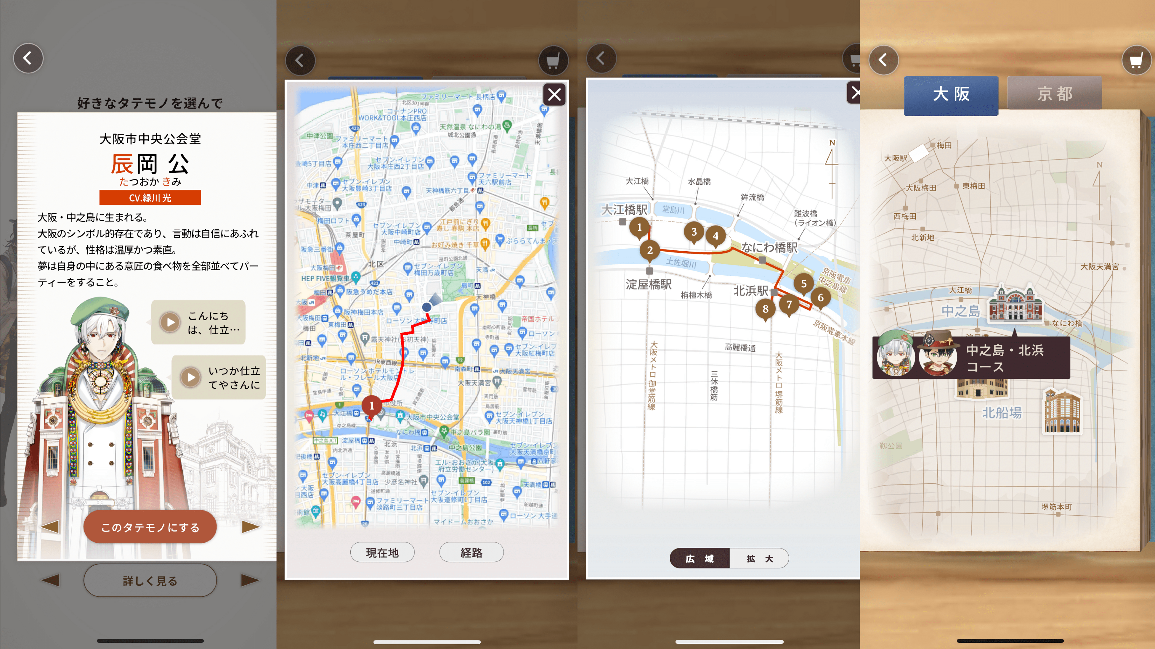 京都市京セラ美術館 開館1周年記念展「モダン建築の京都展」の連携企画として2021年10月にブラウザ版が配信された『モダン建築クロニクル』がついにダウンロードアプリに!京都だけでなく、大阪のキャラクターを加えてモダン建築をより身近に、より詳しく!