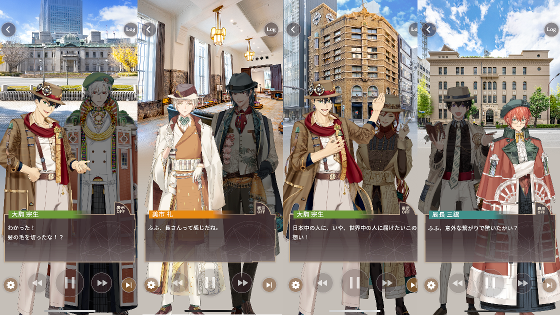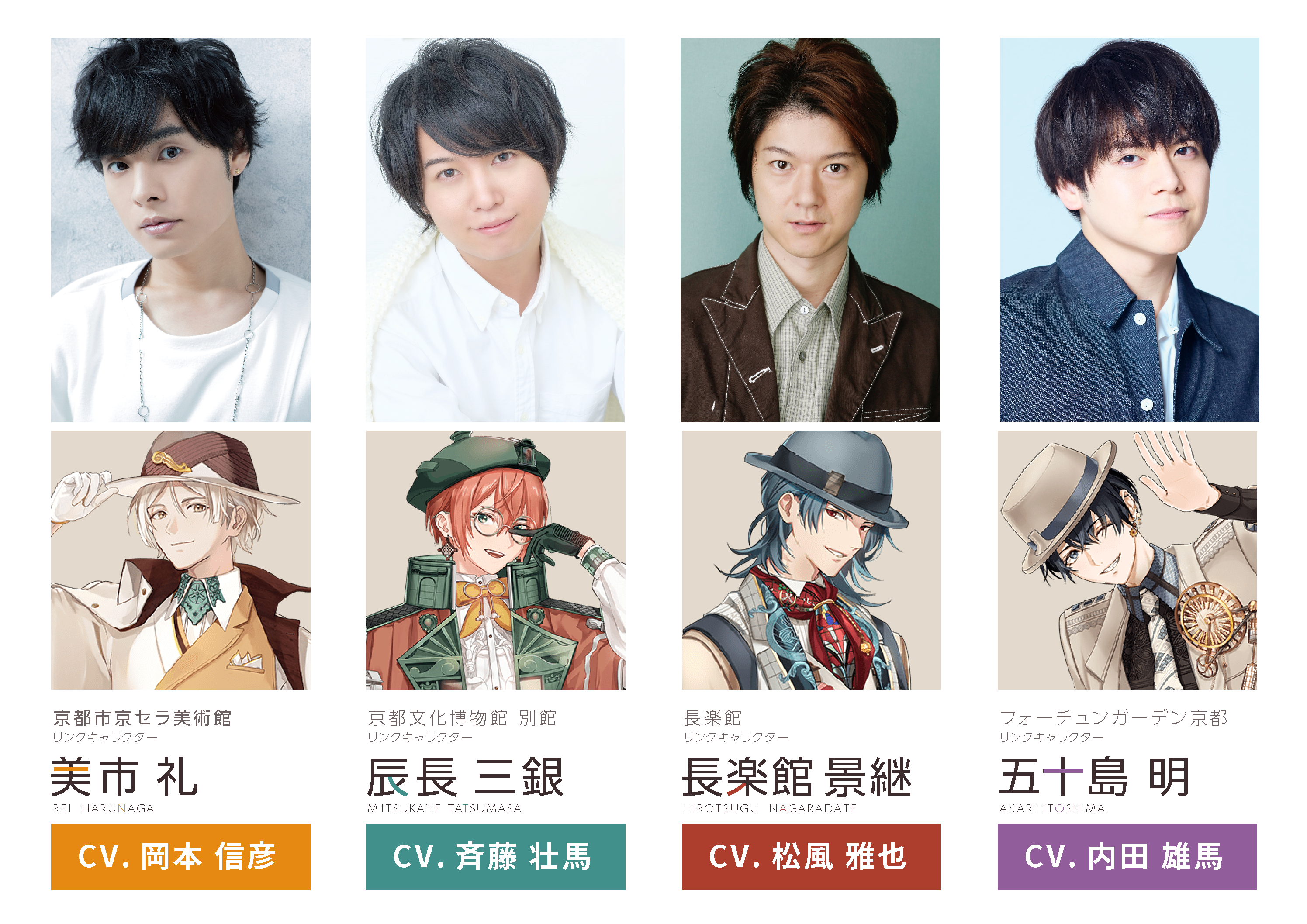 ブラウザ版から引き続き京都のモダン建築たちのCVを担当するのは岡本 信彦(美市 礼/京都市京セラ美術館)・斉藤 壮馬(辰長 三銀/京都文化博物館 別館)・松風 雅也(長楽館 景継/長楽館)・内田 雄馬(五十島 明/フォーチュンガーデン京都)の4人。