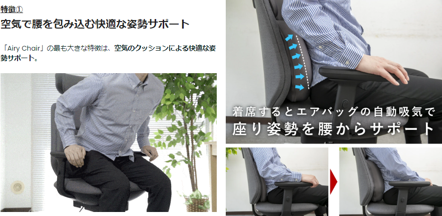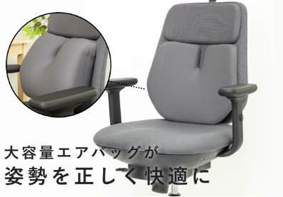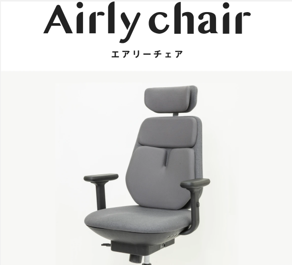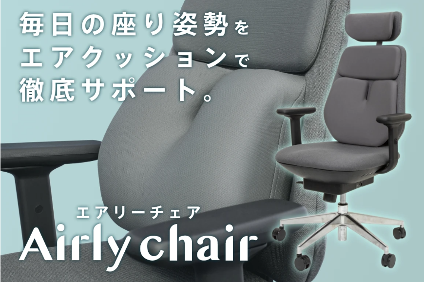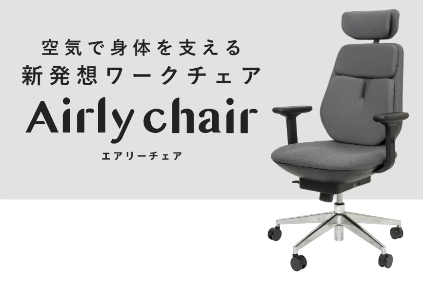 「Airly Chair」は、一人ひとり異なる骨格や体形、座り姿勢に合わせて「空気でやさしく快適に包み込みサポートする新発想のワークチェア」です。