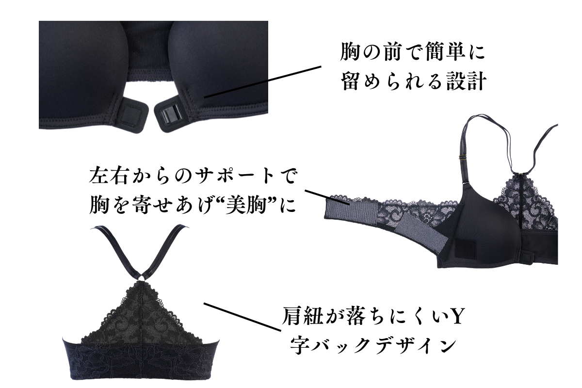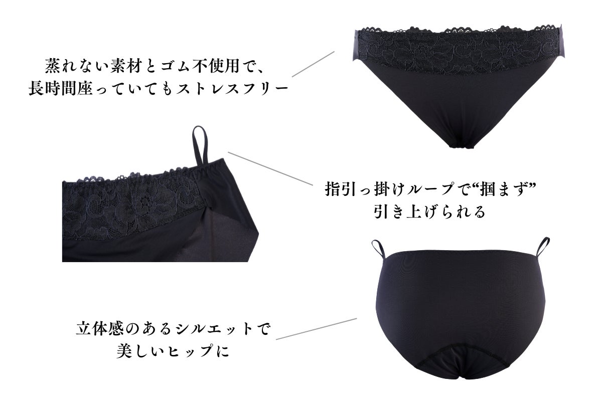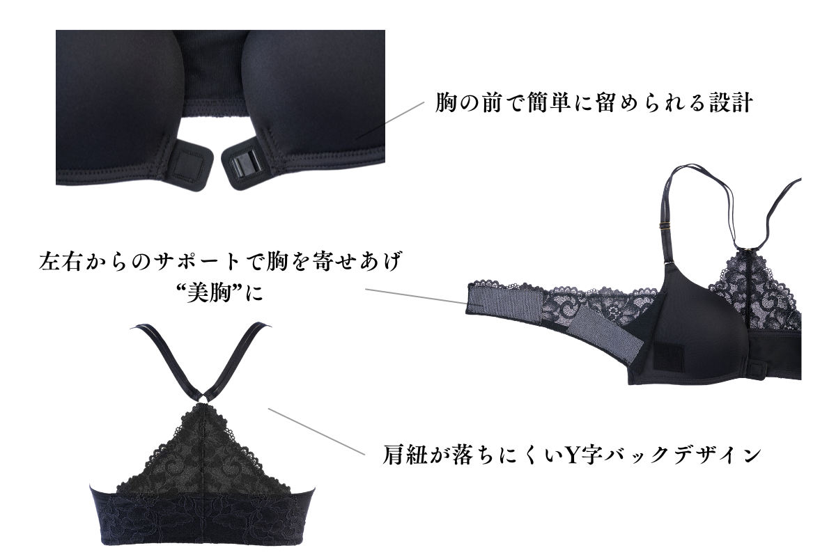 当製品は、障がいのある方々の声を元に、機能性だけでなく、洗練されたデザインと高品質な素材にも拘って開発しました。可愛い下着を選ぶ楽しさや、お気に入りの下着を着ける喜びを誰もが手に入れられるように、という想いが詰まっています。