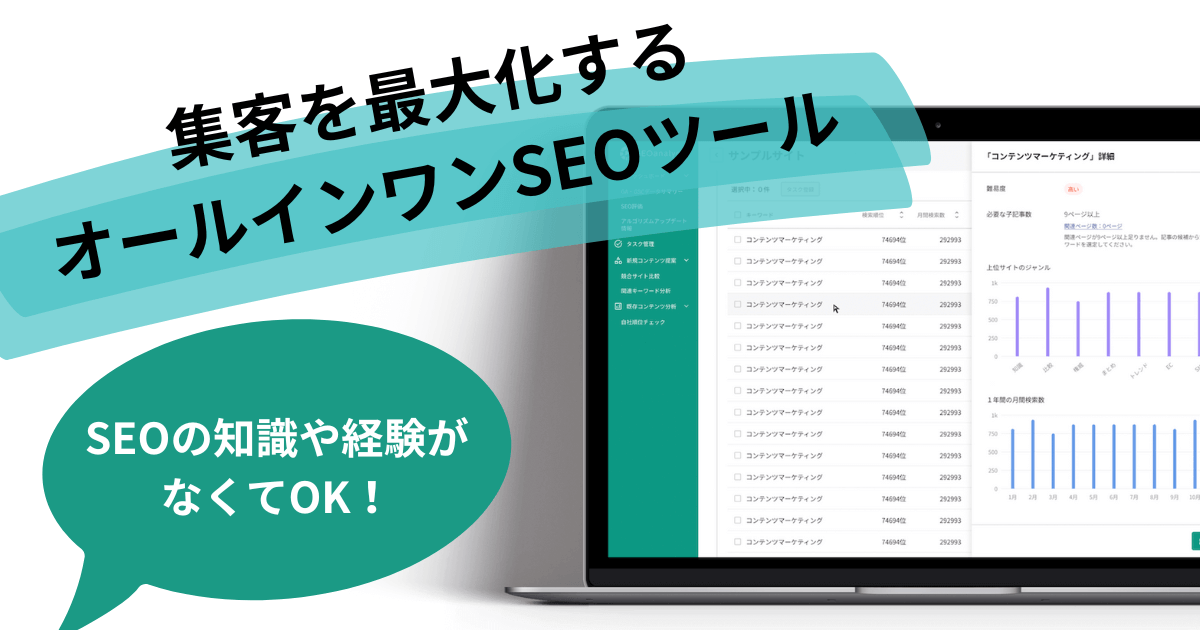 そこで、SEOの専門知識も時間も予算もない企業様が、手軽にコンテンツマーケティングを攻略し、Webサイトから集客できるようにツールの開発をスタートしました。