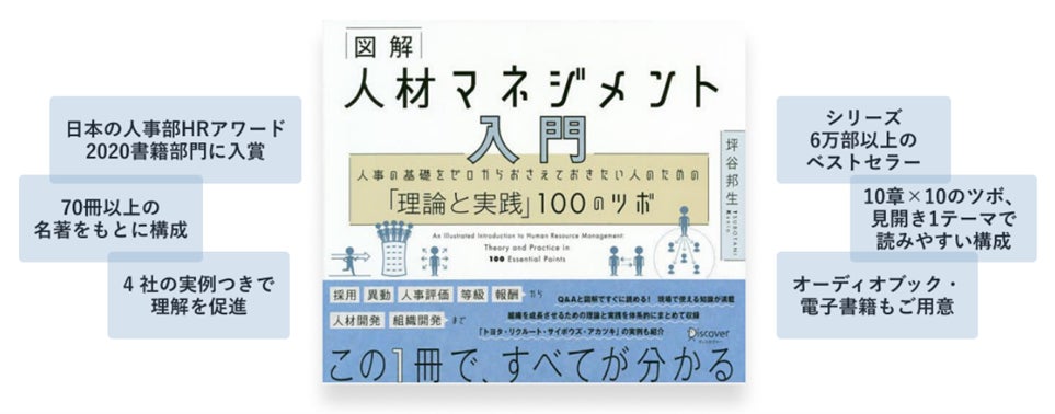代表坪谷が新卒2年目で人事に転身した際、人材マネジメントの領域の広さに驚き理解に苦しんだ体験より、初学者だった頃の自分と同じような方の助けになればという想いから2020年『図解 人材マネジメント入門』を出版しました。本書は、初めてこの領域を学ぶ方やあらためて基礎から学びたい方に向けて「人事が意志をもって語るため」の持論の素材になることを目指しました。ここでいう「人事」とは、企業の人事担当者、経営者、管理職そして人材業界の方など人材を生かして成果を上げる立場にいるすべての人を指します。