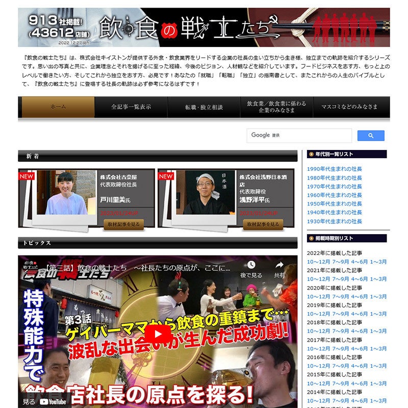 ミストラルの母体であるキイストンでは『飲食の戦士たち』というweb上のコラムを運営しています。