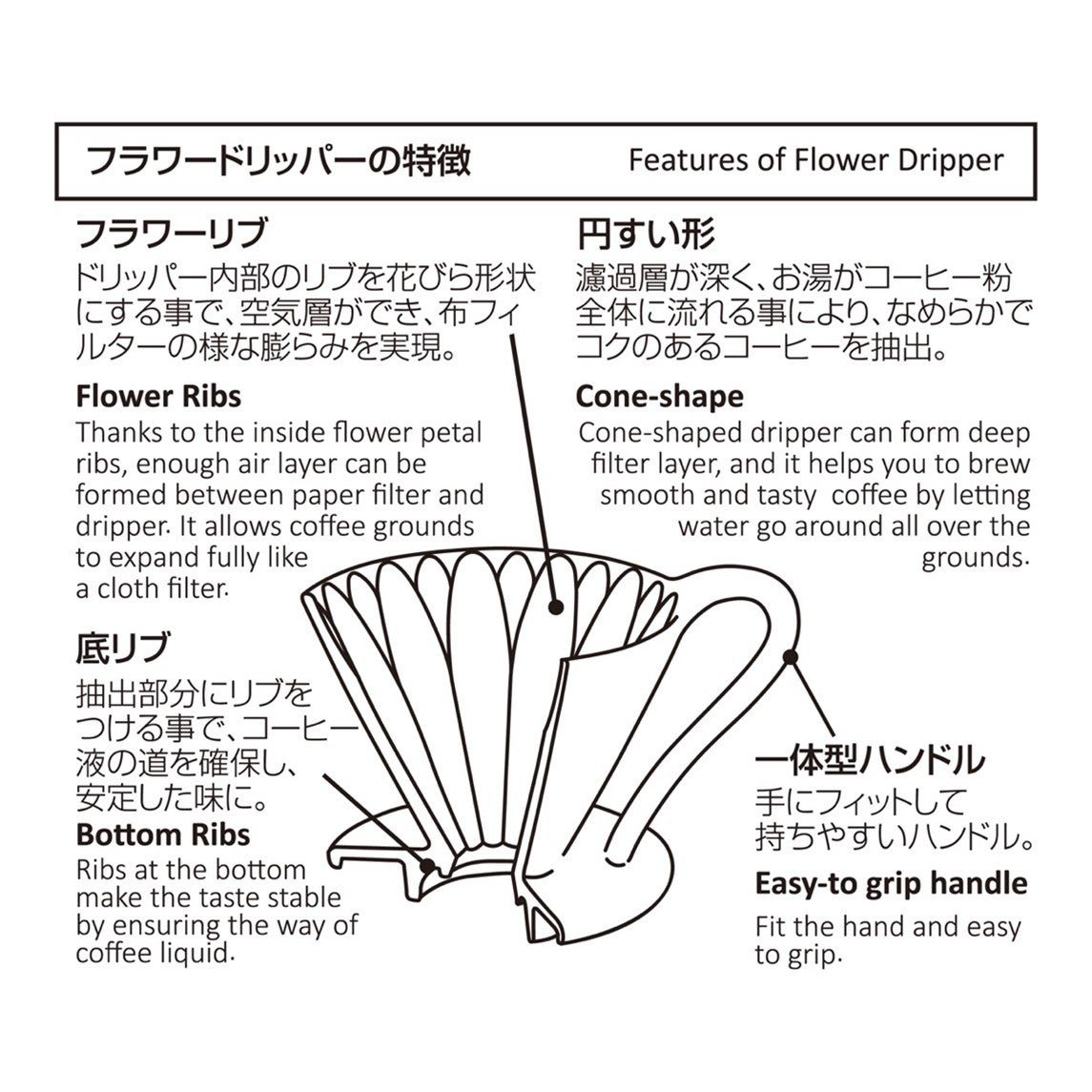 トライタン(Eastman Tritan™コポリエステル)は、卓越した強靭性、耐薬品性、耐熱性、高透明性を備えた樹脂です。従来の樹脂と比べて柔軟性があるため、間違って落下しても割れにくいのが特徴。そのタフさゆえに長く愛用でき、ゴミを減らしムダをゼロにする「ゼロウェイスト」にも貢献できるソーシャルグッドなドリッパーです。
