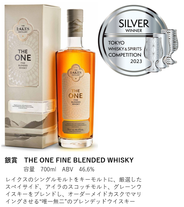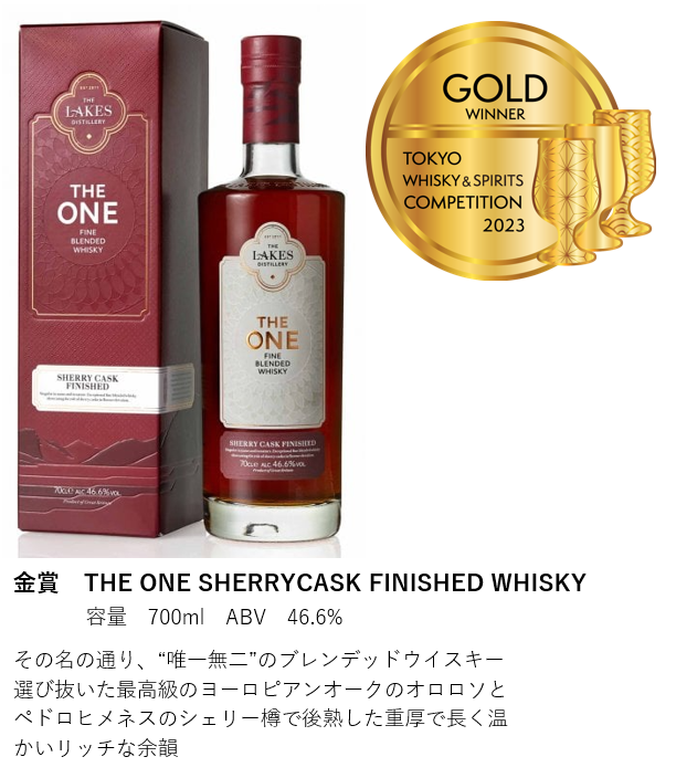 雄山株式会社(本社 神戸:代表取締役社長 加藤泰雄)イングランドより輸入販売するレイクス蒸留所のブレンデッドウイスキー THE ONE SHERRY CASK FINISHED WHISKYが金賞、THE ONE FINE BLENDED WHISKYが銀賞、ならびに特別賞「ベスト・ワールド・ディスティラリー・オブ・ザ・イヤー」を受賞いたしました。
