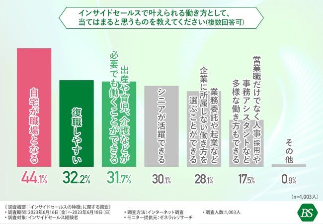 そこで今回、インサイドセールス(内勤営業)専門の人材紹介(https://peraichi.com/landing_pages/view/jinzaitensyoku/)を行っている合同会社ブライトシーン(https://www.brightscene.org/)は、インサイドセールス経験者を対象に、「インサイドセールスの特徴」に関する調査を実施しました。