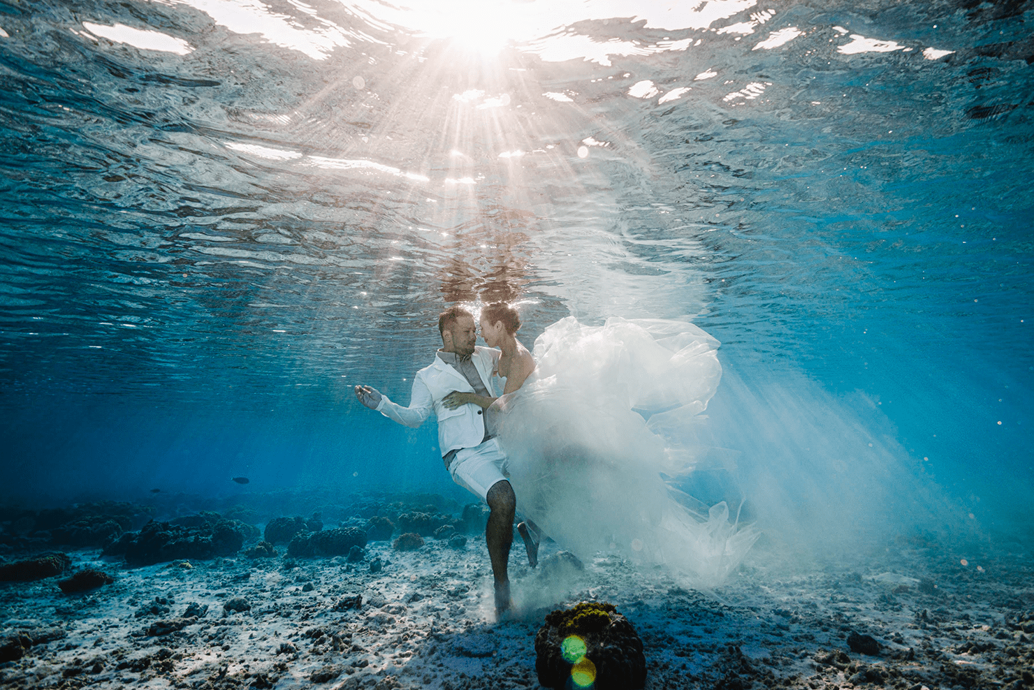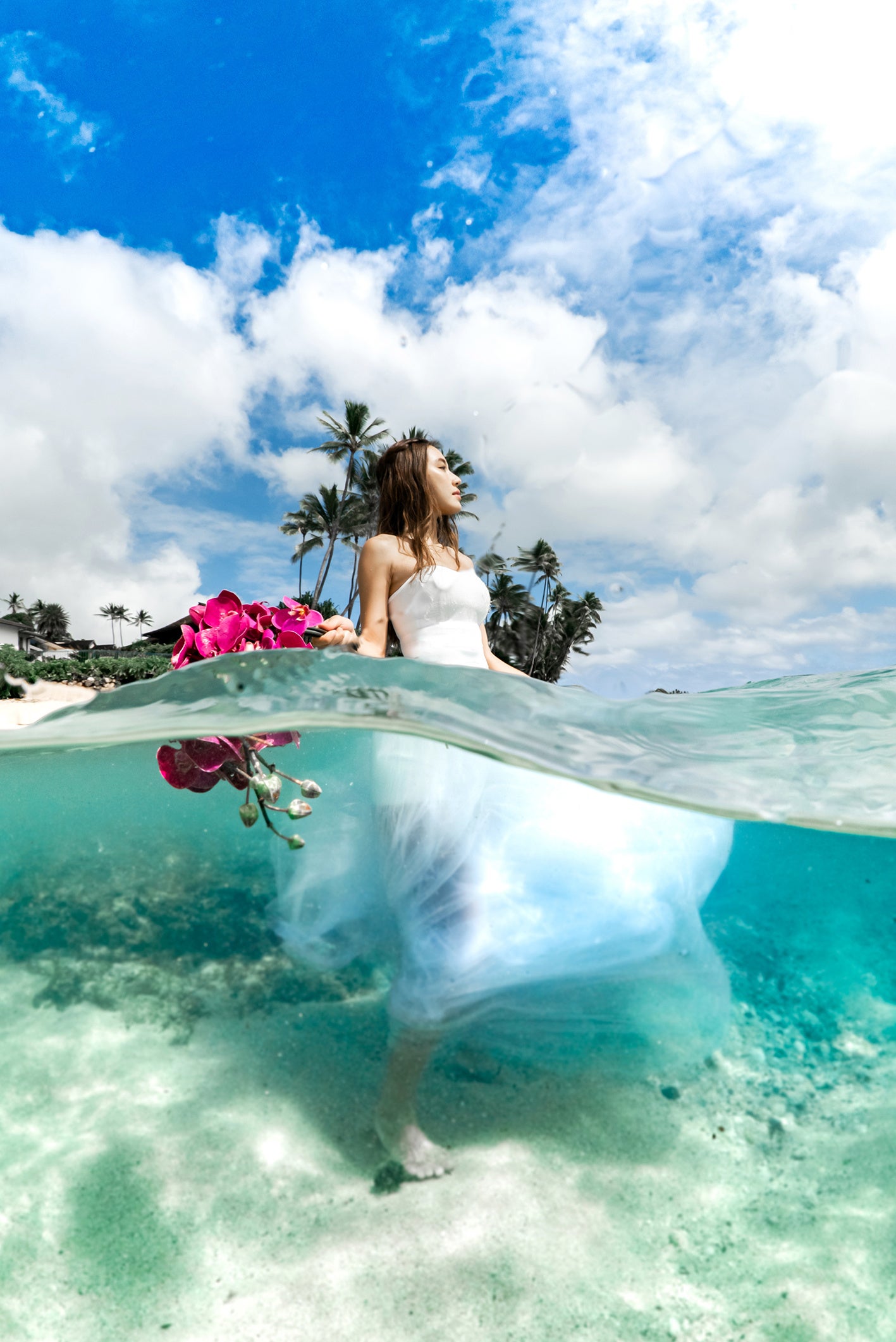 海辺の挙式や撮影だけでなく、水中でのセレモニーやマリンアクティビティなど、これまでの制限を超えたウエディングが叶えられます。