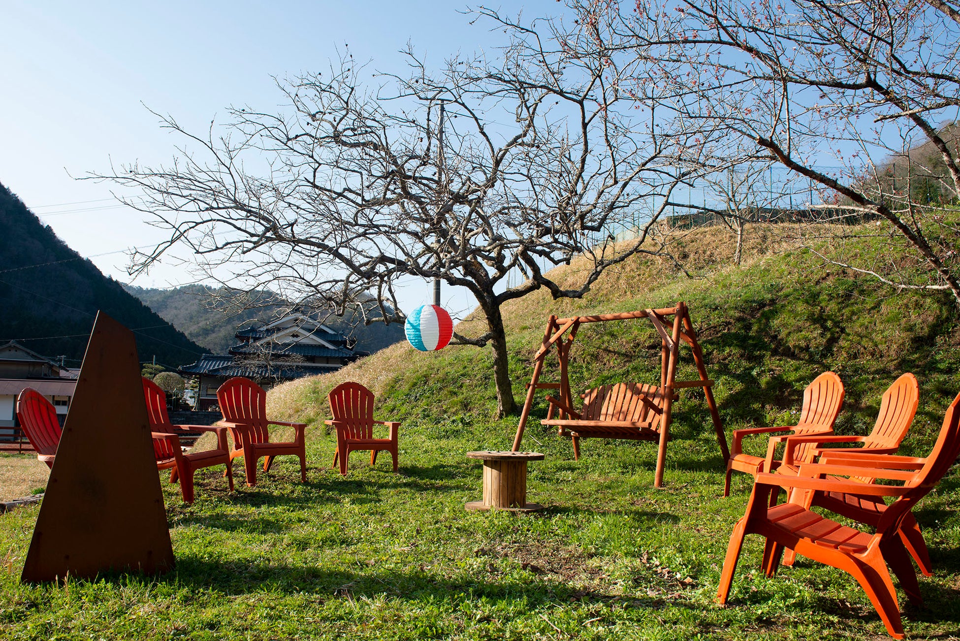 フリースベースには、ガーデンチェア、ブランコ、焚き火台を設置しております。風があっても遊べる「アウトドア・バドミントン」、柔らかくて怪我の心配なくドッジボールができるフリスビー「ドッヂビー」、フィンランド生まれのアウトドアスポーツ「モルック」などの遊び道具も無料で使って頂けます。もちろん、自前のタープやテントを張って本格的なデイキャンプも楽しんで頂けます。夏には徒歩3分の清流で泳いでいただけます。