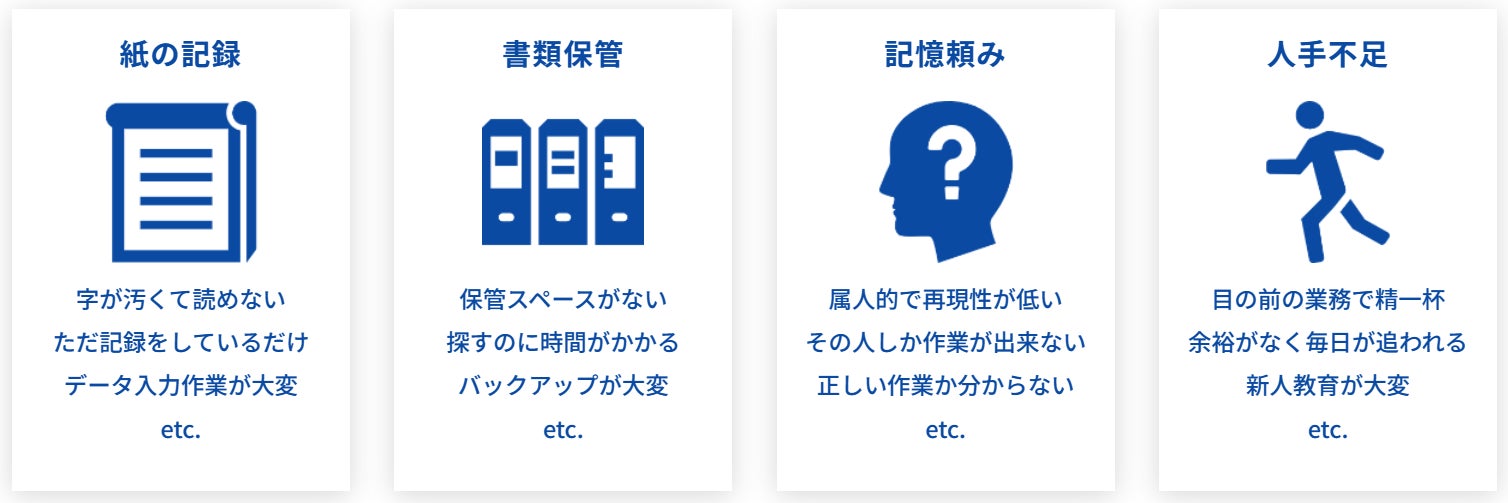 →「モノを作る」というコア業務以外の、紙の日報記入業務やデータ入力業務をなくせないか、その時間負荷や心的負荷をなくせないか