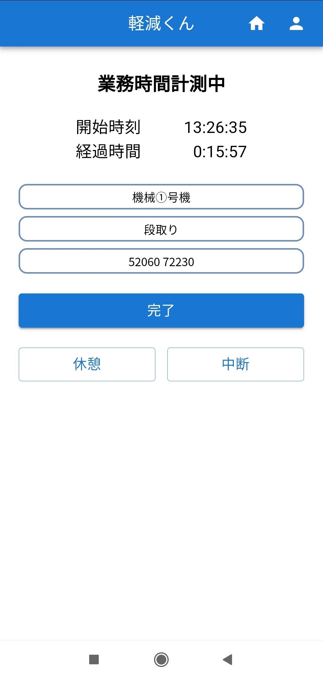 3:QRコードの読み込みが完了すると、業務実施中となり、時間計測が開始