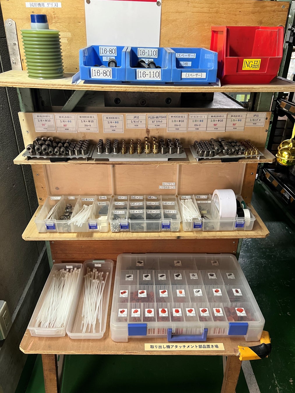岡田電機工業(株)の2Sスポット ニップル等の備品置き場