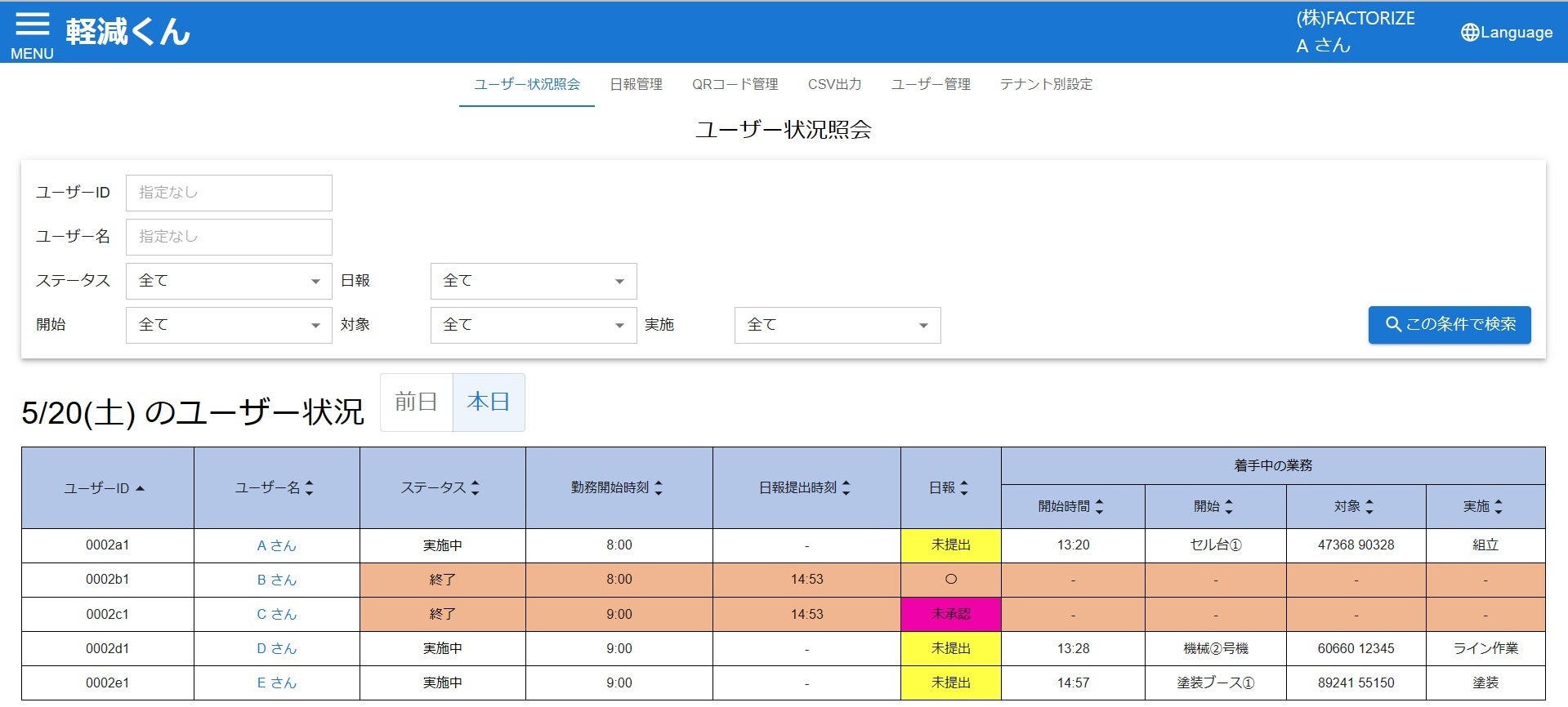 2S(整理整頓)管理を全面に出した工場運営で、工場見学に来られるお客様から「2Sが徹底されてますね、無駄がない工場ですね」とお褒めのお言葉をいただくことがある一方、現場は紙の日報を使い、1日の終わりに回収、毎日数時間かけてExcelに打ち込んでいる実態でした。過去の日報を確認したい際は、日報の山から該当分を探し出すという状況で、本当の意味で2Sが出来ている工場なのか、無駄がない運営が出来ているのか、正直自問自答することもありました。