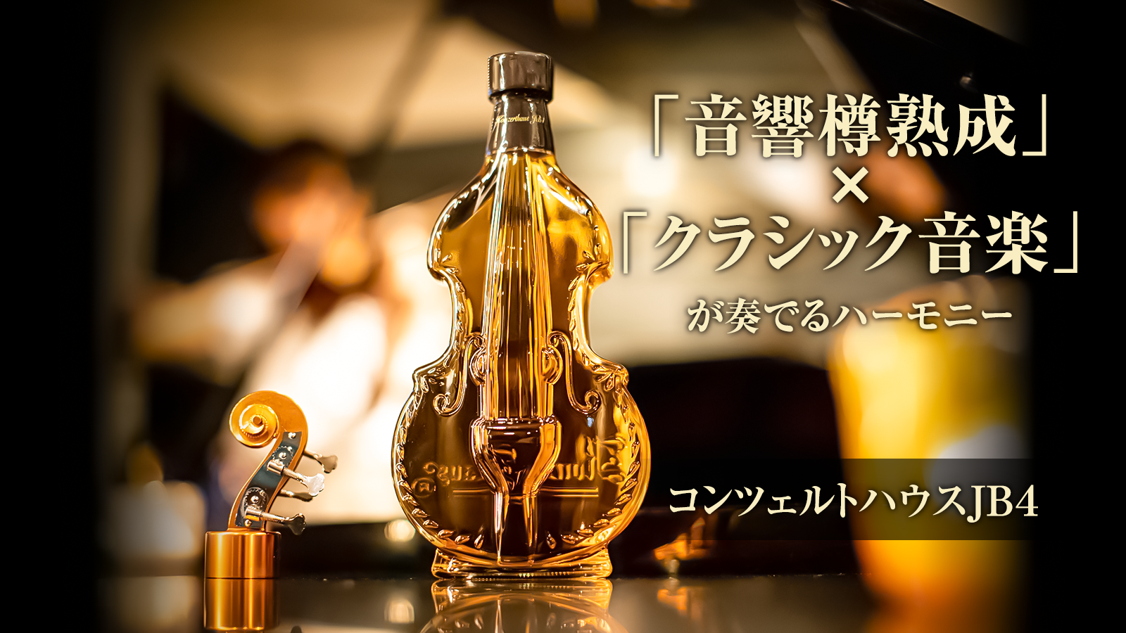 音響振動として与える音源は、ヨハネス・ブラームスの交響曲第1番から4番。特に名演奏の音源を特殊な装置を使い音響振動として与え追加熟成させたロマン溢れるウイスキー。クラシックの中でも音響熟成に向いた低音領域が多い楽曲を選択し、より良い音響熟成になるようスピーカーの配置にこだわった。