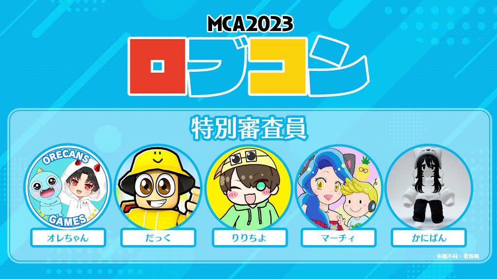 今回は2023年8月上旬に開催される「メタバースクリエイティブアワード2023」(略称:MCA2023)の「Roblox部門」として、MCA2023を主催する株式会社モンドリアン、及びそのメディアパートナーとなる株式会社毎日放送(MBS)のバックアップを受けての実施となります。