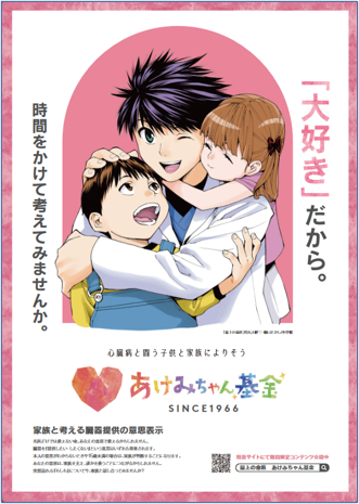 マンガの購入金額は寄付金として小児心疾患者とその家族のために活用。主人公・西條命を起用した啓蒙ポスターも全国の移植施設にて掲示