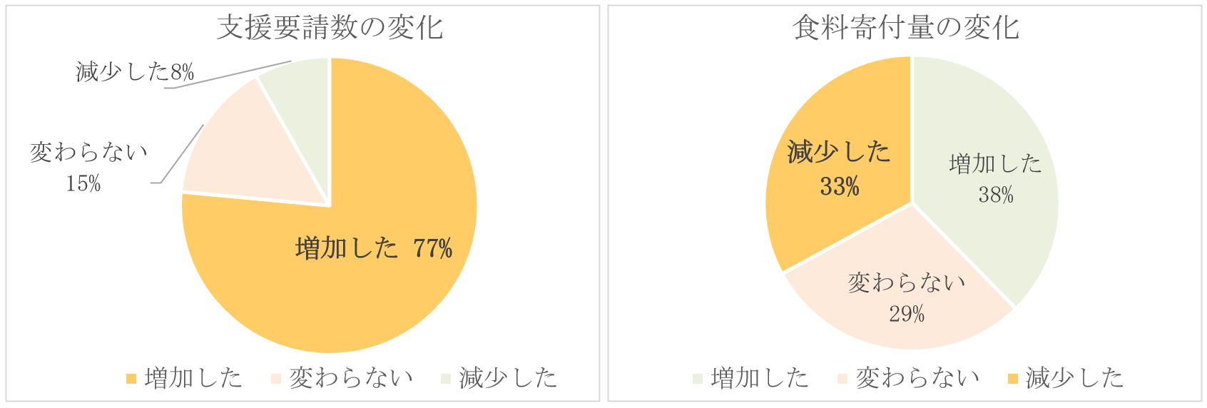 しかし、物価高騰や新型コロナウイルスの影響により、約8割のフードバンク団体では、困窮世帯からの食料支援要請が増加している一方で、約3割のフードバンク団体では食品の寄贈が減少していることが調査の結果明らかになりました。困窮世帯への食料支援を通じて貧困対策に貢献するために、全国フードバンク推進協議会では加盟フードバンク団体と共に「第5回フードバンクこども応援全国プロジェクト」を実施いたします。