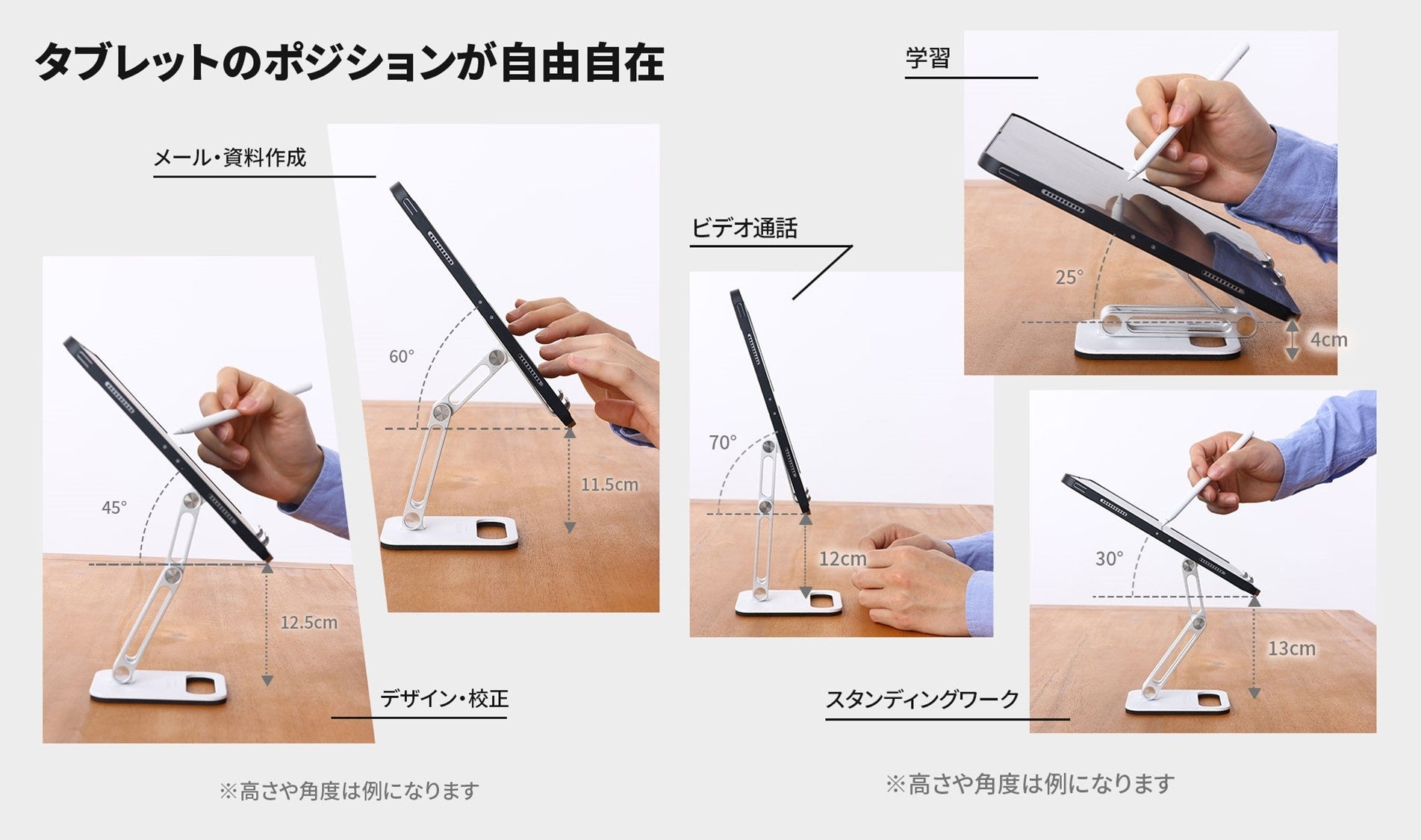 iPadやタブレットの位置が自由自在!ノマド・テレワーカーに最適な小型・軽量タブレットスタンド発売