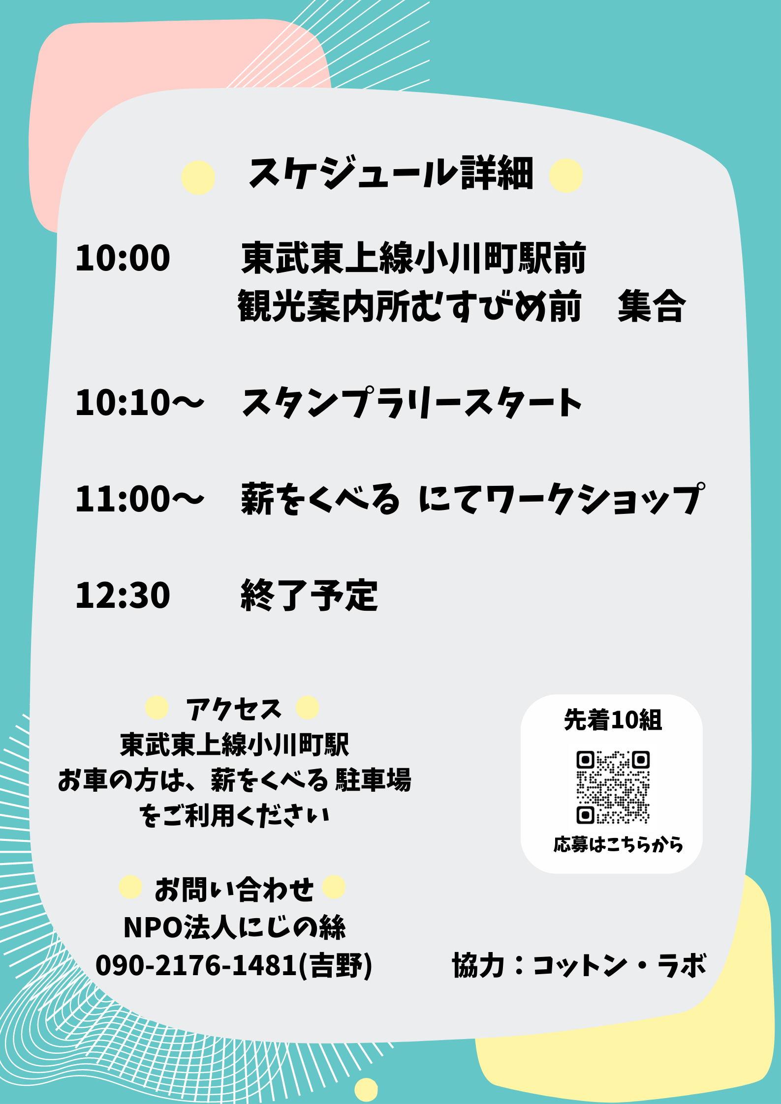 10:00 東武東上線小川町駅前 観光案内所むすびめ前に集合