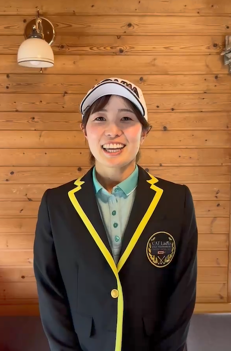 「 ユアサ商事所属蛭田みな美です。皆さんのご声援のおかげで今回『CAT Ladies 2023』優勝できました。今期まだ大会が続くので2勝目目指して頑張っていきたいと思いますので、引き続き応援よろしくお願いいたします。ありがとうございました」