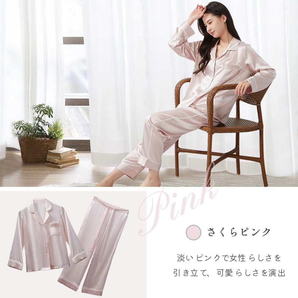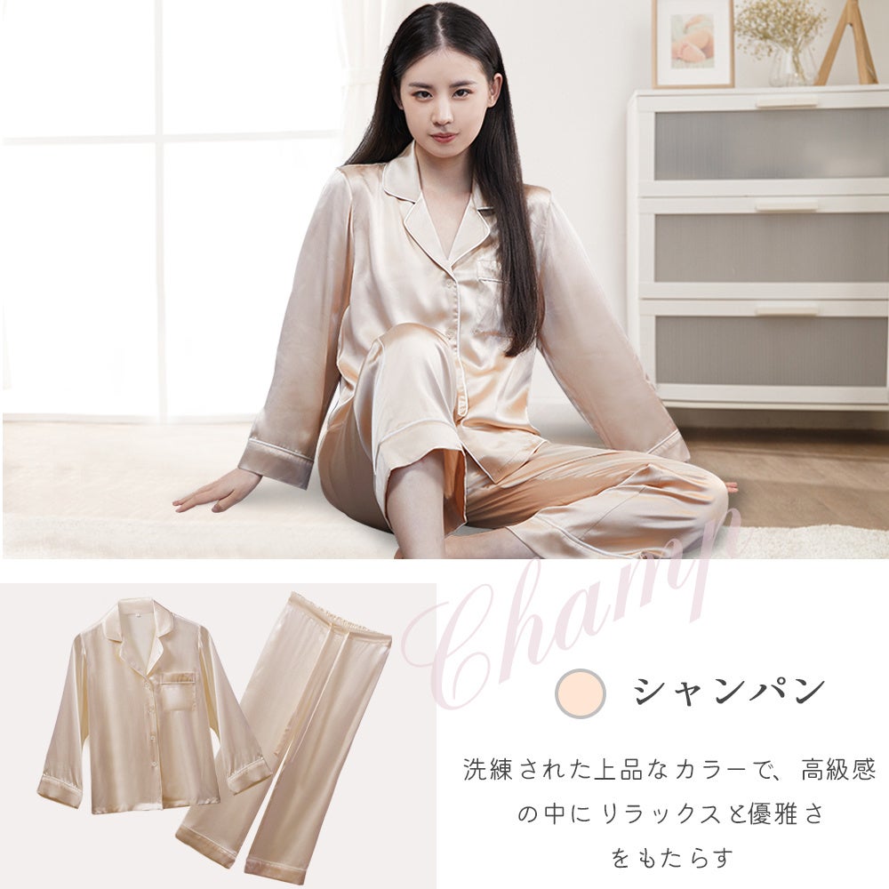 ◆最高品質シルクパジャマ【天然シルク100%】肌寒い季節におすすめ!くつろぎの睡眠空間を彩る美しいパジャマ。