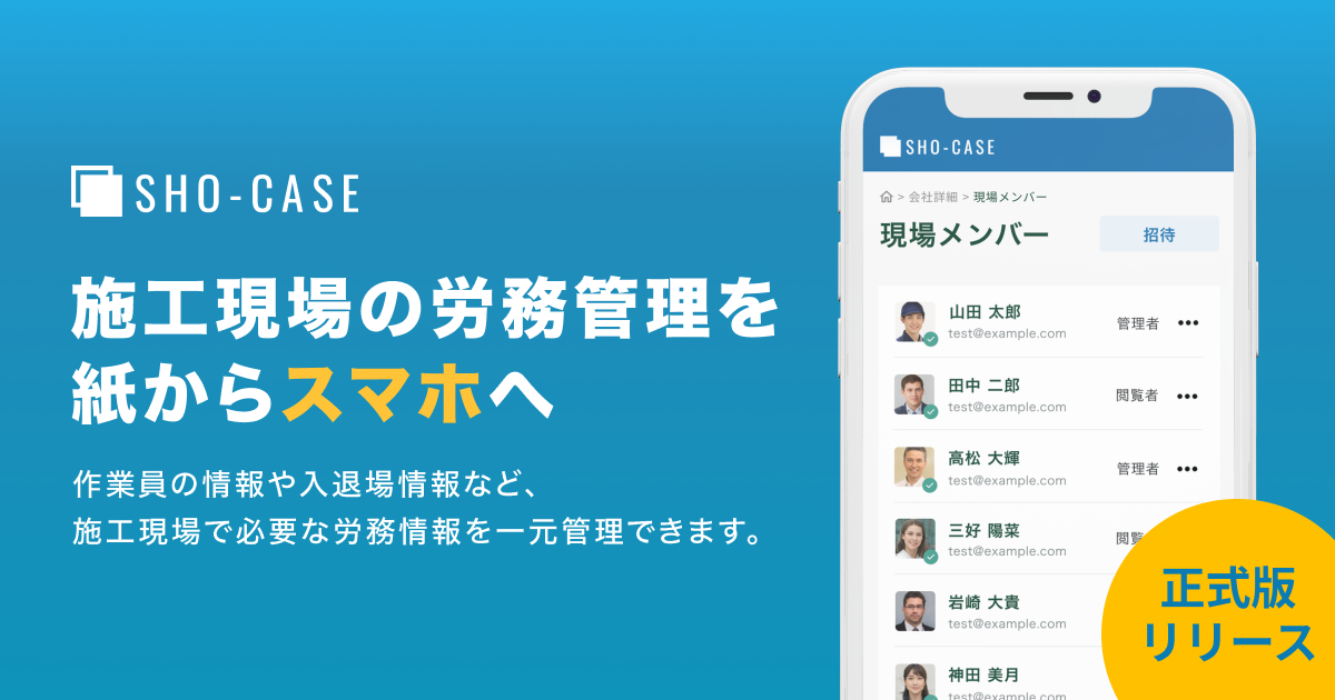 株式会社SHO-CASE、建設業の2024年問題の解決に向けて、施工現場の労務安全管理SaaS「SHO-CASE(ショーケース)」正式版を提供開始
