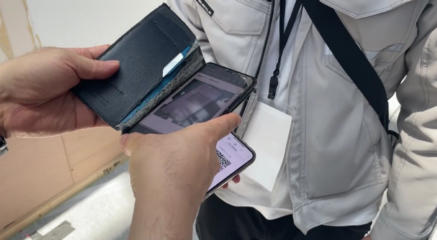 現場に到着したら、現場監督が発行したQRコードをスキャンするだけで簡単に入退場操作ができます。いつ・だれが・どの現場に入ったという出面の情報を一元管理できます。