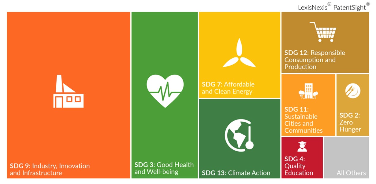 国連が認識している169のSDGsの目標と231の進捗指標により、SDGsは、他の環境・社会・ガバナンス(ESG)のフレームワークよりもより具体的で普遍的に受け入れられています。特許制度は、画期的なイノベーションが目標達成に向けた進捗を迅速に進めることができると認識し、企業に新しい解決策の能力を高めています。