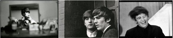 左: Paul McCartney, self portrait, London 1963-4 © 1963-4 Paul McCartney 中:John and George, Paris. 1964 © 1964 Paul McCartney 右:Ringo Starr, London 1963-4 © 1963-4 Paul McCartney.