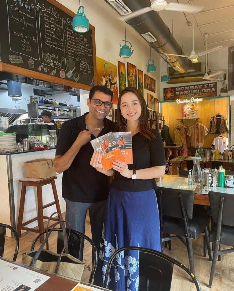 書籍「あなたのおかげで僕があるーインドの元ストリートチルドレンの半生」著者のアミン氏(左)と翻訳者の中川(右)