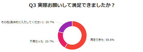 工事内容に「満足できた」は58.6%で、「不満だった」と回答している20.7%は、その後別の業者への依頼なども考えると正しい業者選びは重要だと考えます。