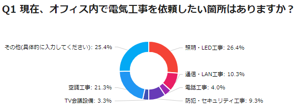 Q1.現在、オフィス内で電気工事を依頼したい箇所はありますか?